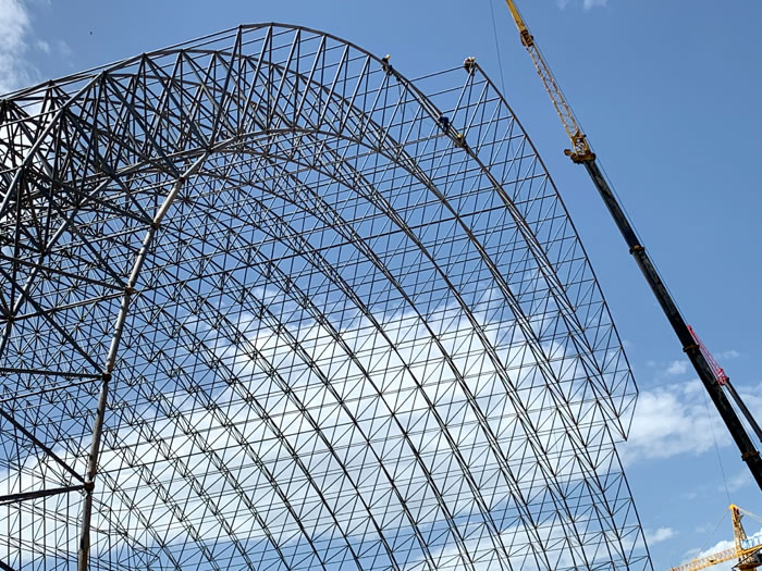 (2)网架加工前应对现场尺寸进行复测,确认无误后方可进行加工、安装;网架制作、运输、安装应遵守《空间网格结构技术规程》JGJ7-2010、《钢网架贺州螺栓球节点》JG/T 10-2009、《钢网架贺州螺栓球节点用高强度螺栓》 GB/T 16939-2016、《贺州钢结构贺州工程贺州施工规范》 GB50755-2012、《贺州钢结构贺州工程施工质量验收标准》 GB50205-2020。